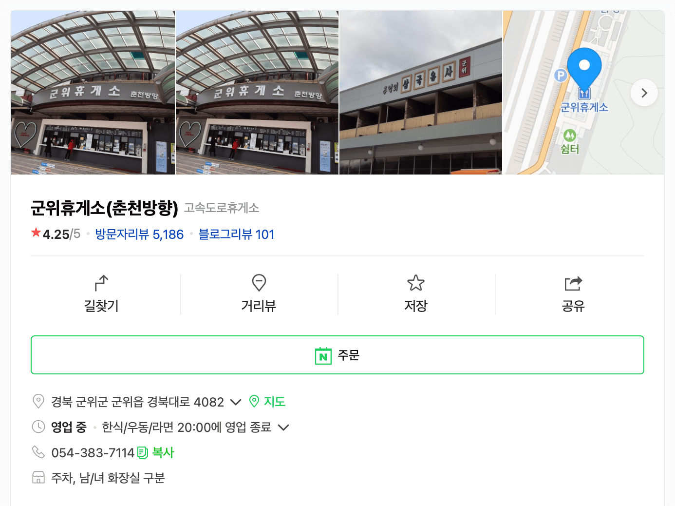 군위 휴게소(춘천 방면) 음식 맛 평가
