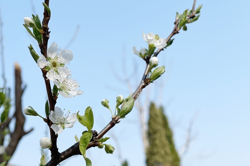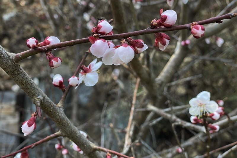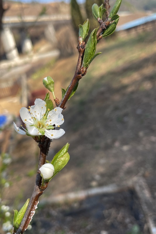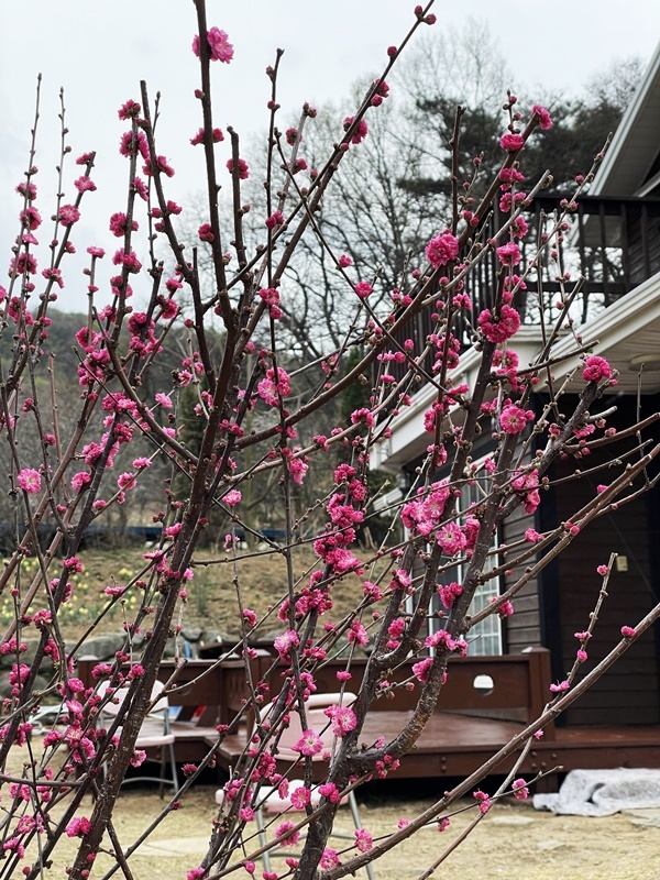 우리 마당에 가장 먼저 피는 꽃은 매화입니다.