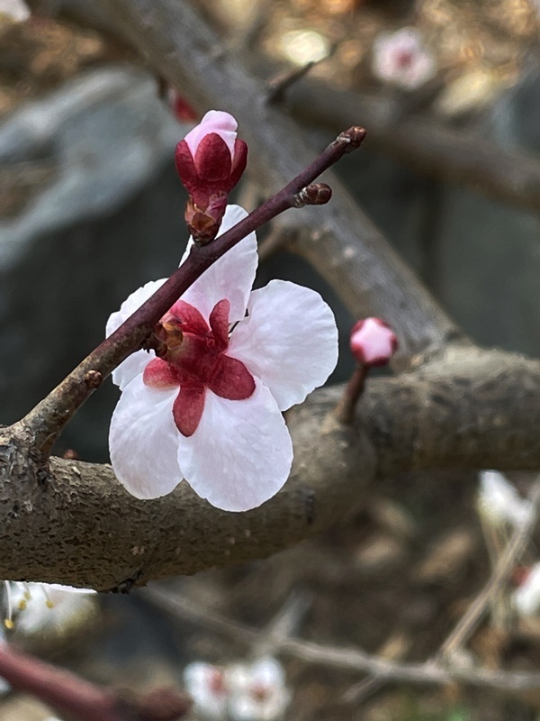 붉은 매화의 뒷면도 매우 예쁘다.