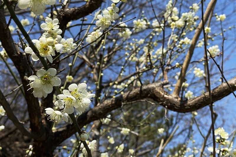 하얀 매화가 먼저 핀다.