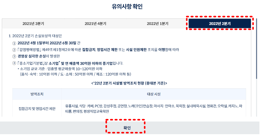 현재 2021년 3분기부터 2022년 2분기까지 총 4분기 보상 신청및 지원 아래 공식 홈페이지를 통해 지원 자격을 확인하고 지원하실 수 있습니다.