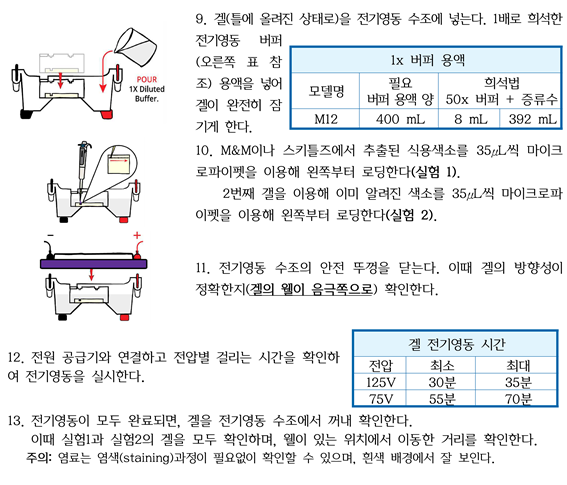 Skittles 또는 M&M의 이러한 정보와 색소는 전기영동으로 쉽게 추출 및 분리할 수 있습니다.. 같은 농도의 아가로스 젤, 같은 긴장, 같은 시간 동안 이동한 거리를 비교하여 어떤 색 사탕에 어떤 색이 포함되어 있는지 알아냅니다..